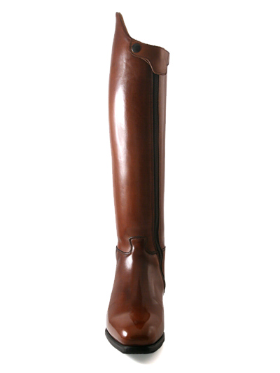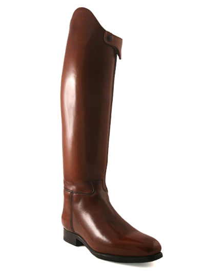 Couro Box Calf • Forro integral em couro • Protecção do reforço do artelho • Reforço do cano do lado exterior em couro • Fecho frontal/lateral YKK • Brida de protecção de fecho anti-deslizante com botão de pressão • Biqueira quadrada • Palmilha em couro • Sola cosida em borracha.